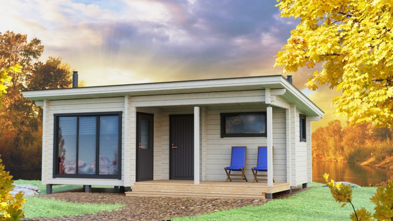 Massiivinen 95 x 160mm höylähirsi valmiiksi salvottuna paketeissa, väliseinä ja päätykolmiot aidosti hirttä!