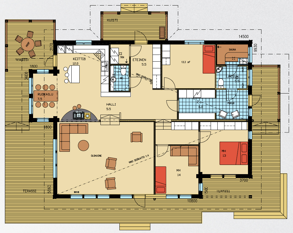 4 H + K + HALLI + TEKN.TILA+ 2 x WC + S/PH + KHH + PKH