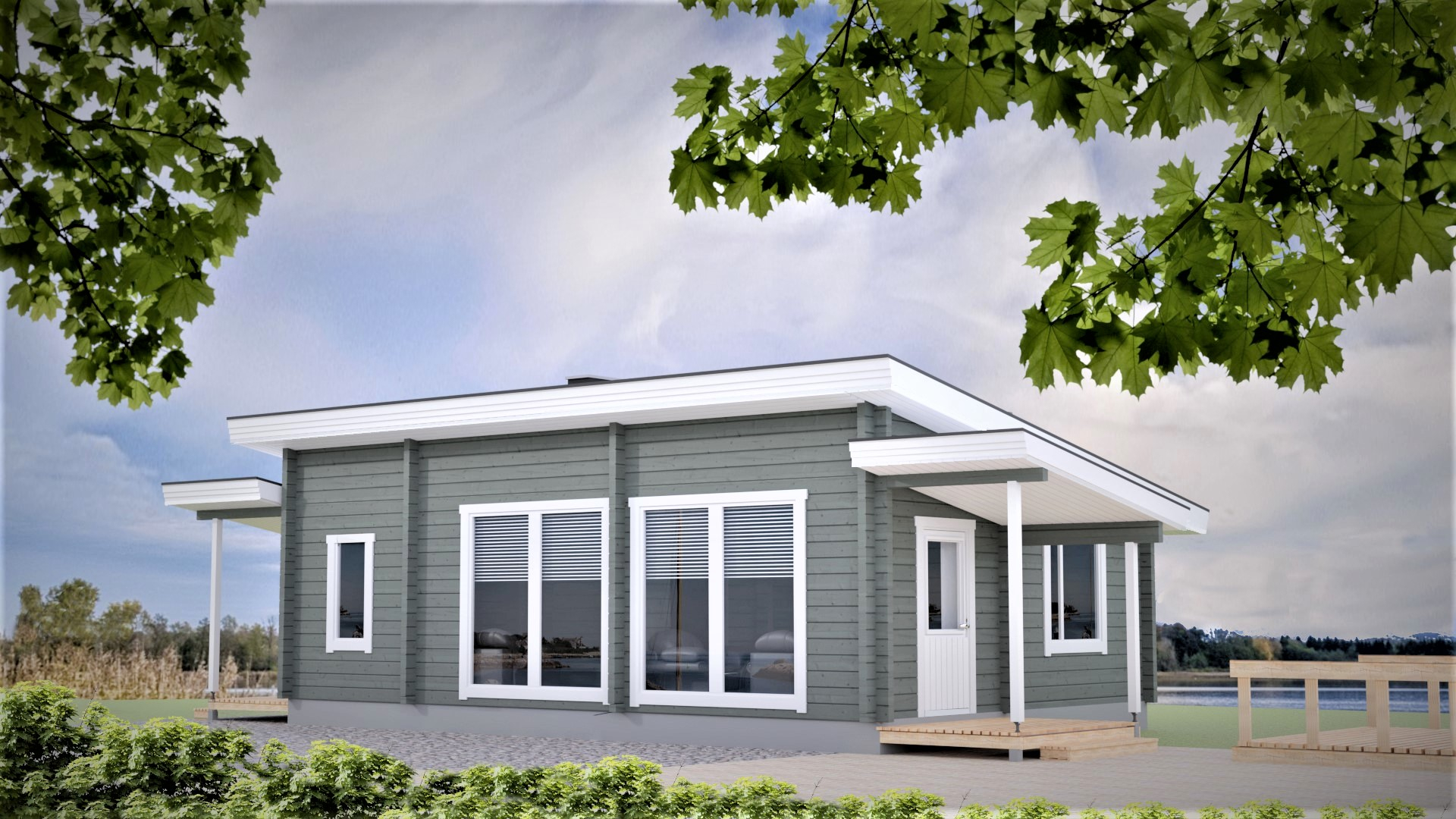 Valoisa moneksi muuttuva moderni hirsihuvila jossa tilat on optimoitu hyötykäyttöön.