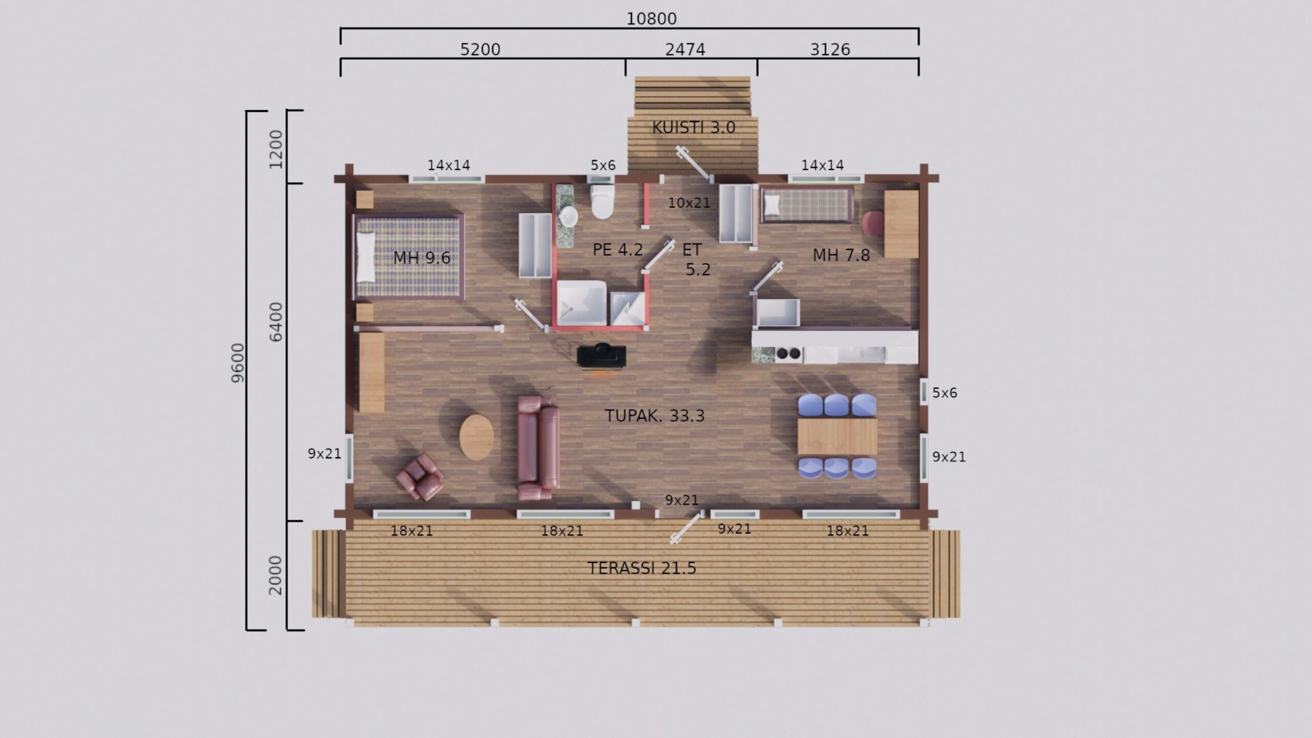 Isot ikkunat takaavat yhteyden luontoon jossa voit rauhoittua kiireisen työviikon jälkeen