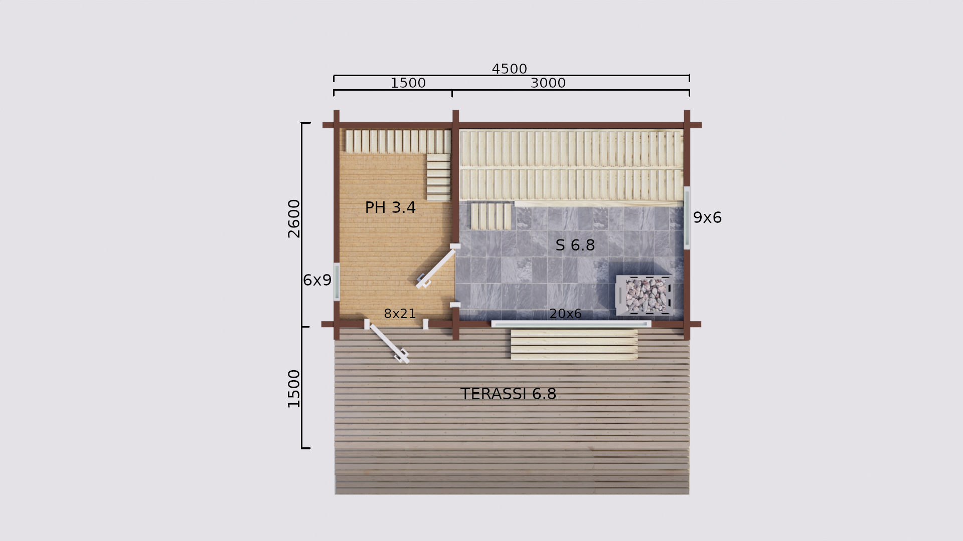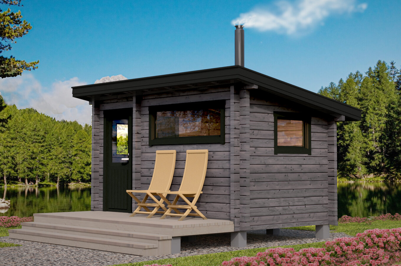 Saunassa mahtuu hyvin isommallakin porukalla löylyihin ja isosta etuikkunasta näkee maisemia löylyissä istuessa.