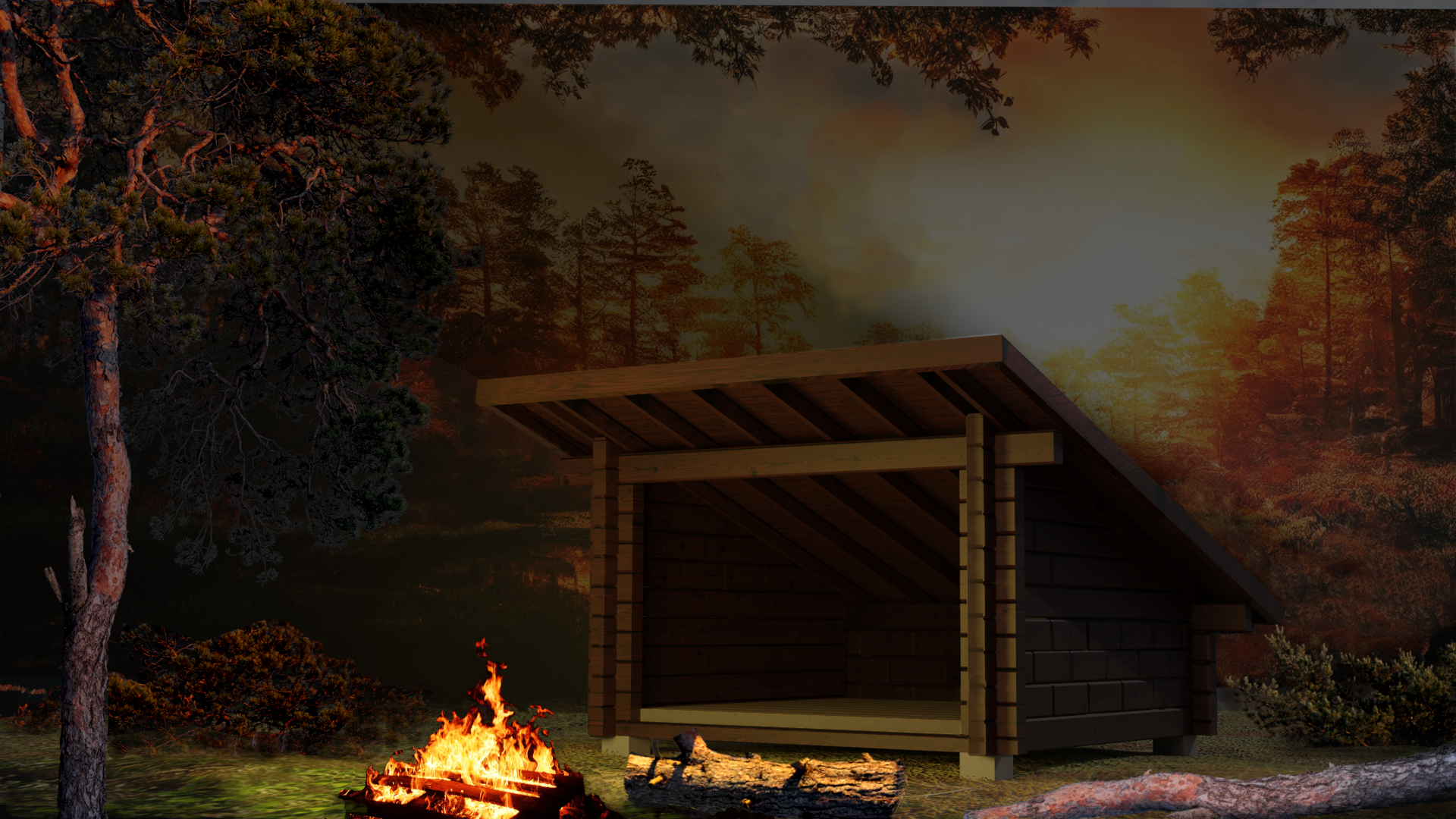 Laavurakennus eräkäyttöön nuotiopaikalle tai pihapiiriin