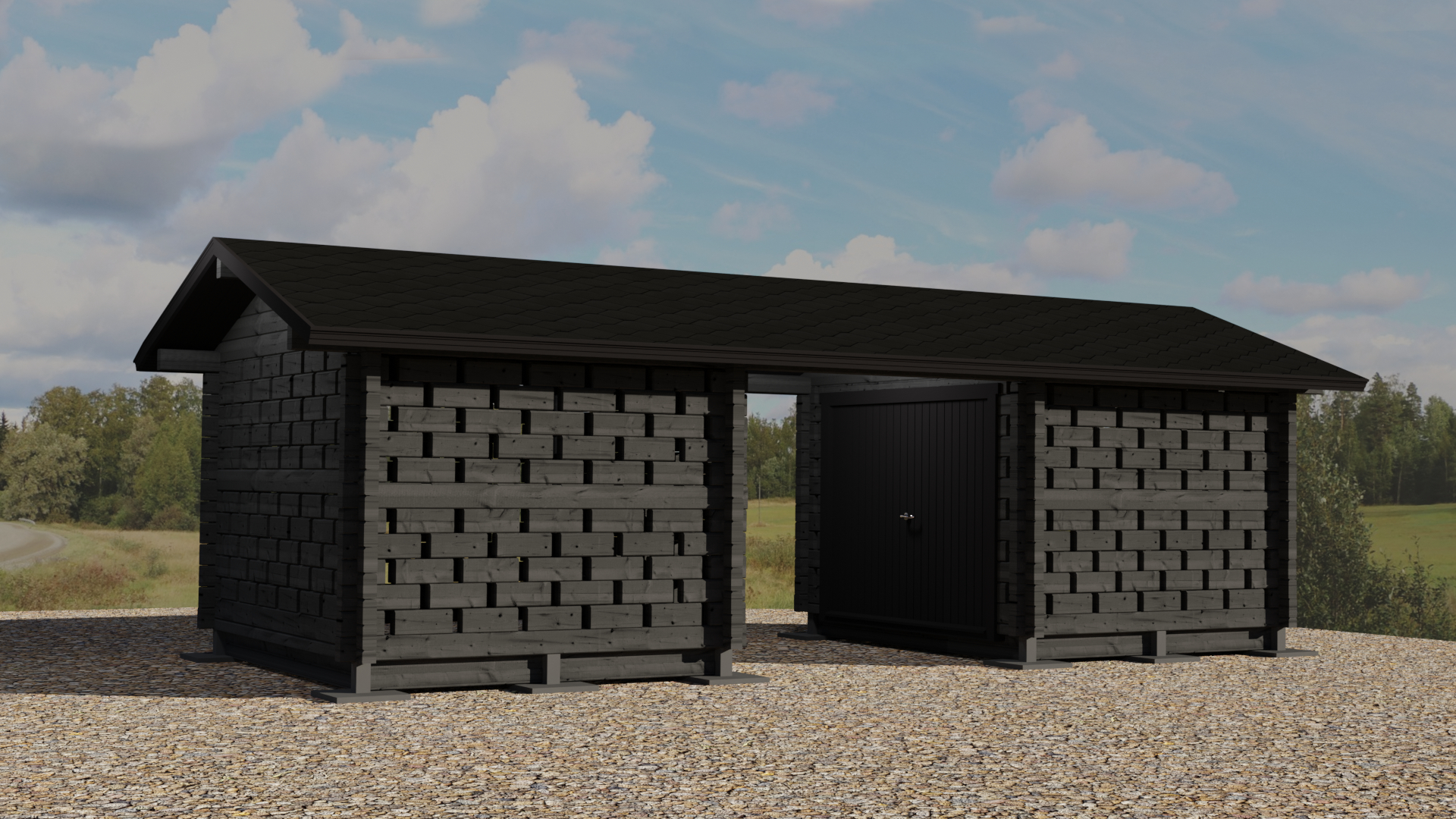 Liiteriksi tai varastokäyttöön tilava 2 osainen liiteri jonka välitilassa säilytät vaikka peräkärryä tai mönkijää.