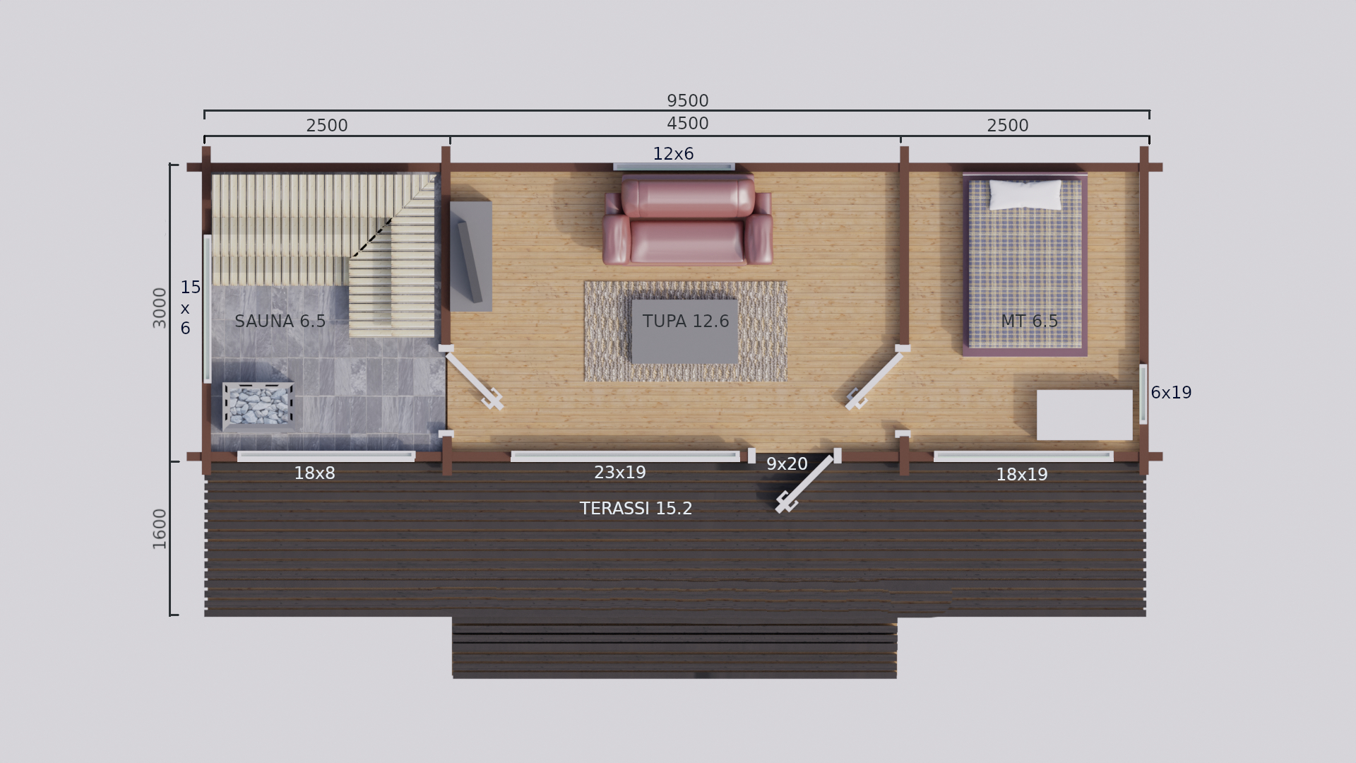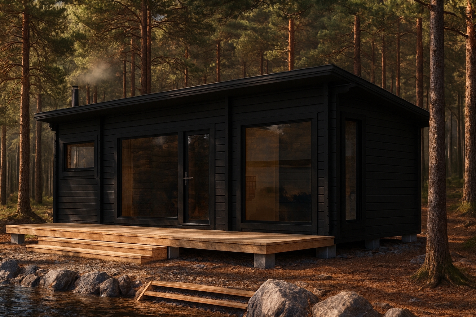 Tämä moderni, alle 30 m² hirsihuvila on suunniteltu niin, että jokainen neliö palvelee. Tuvasta ja erillisestä makuuhuoneesta avautuvat isot ikkunat tuovat maiseman osaksi sisustusta — järvimaisema, pihapiiri tai metsä ympärillä tekee tästä mökistä paikan, jossa rauhoitut heti sisään astuessasi. Hirsirakenteen tunnelma tuo lämpöä ja luonnonläheisyyttä, joka tuntuu niin arjessa kuin lomapäivissä.