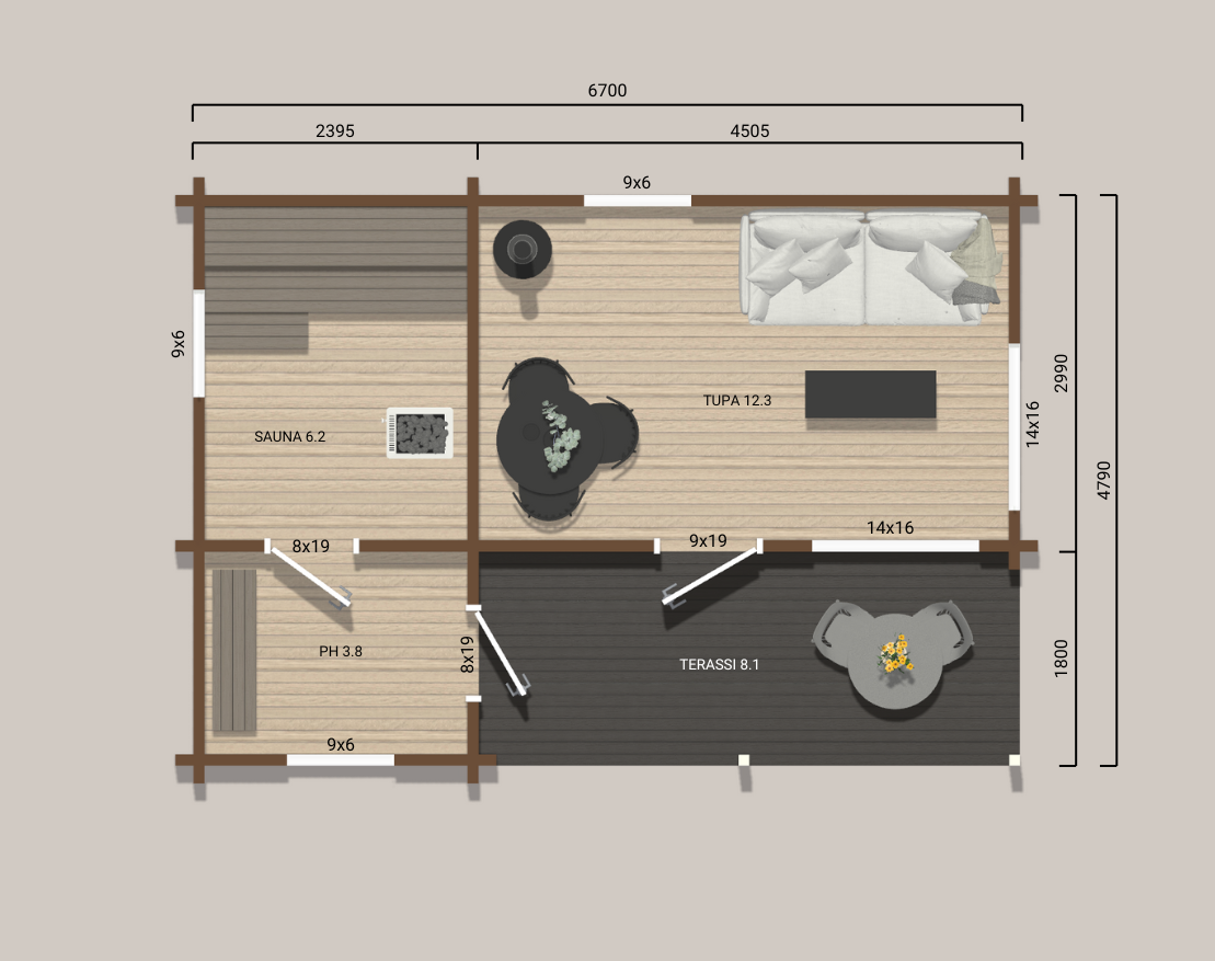 • Katettu terassi 8,1 m²